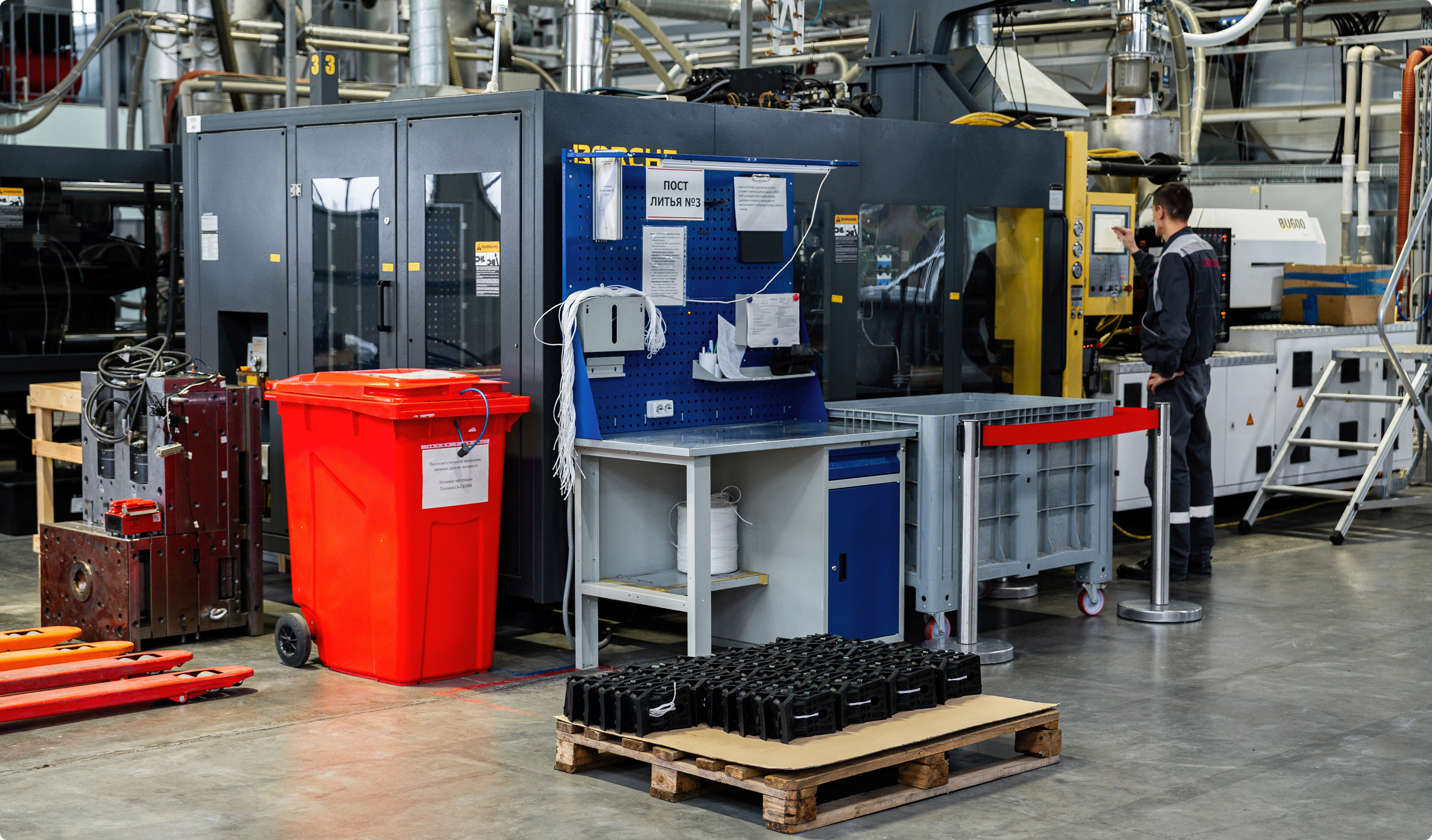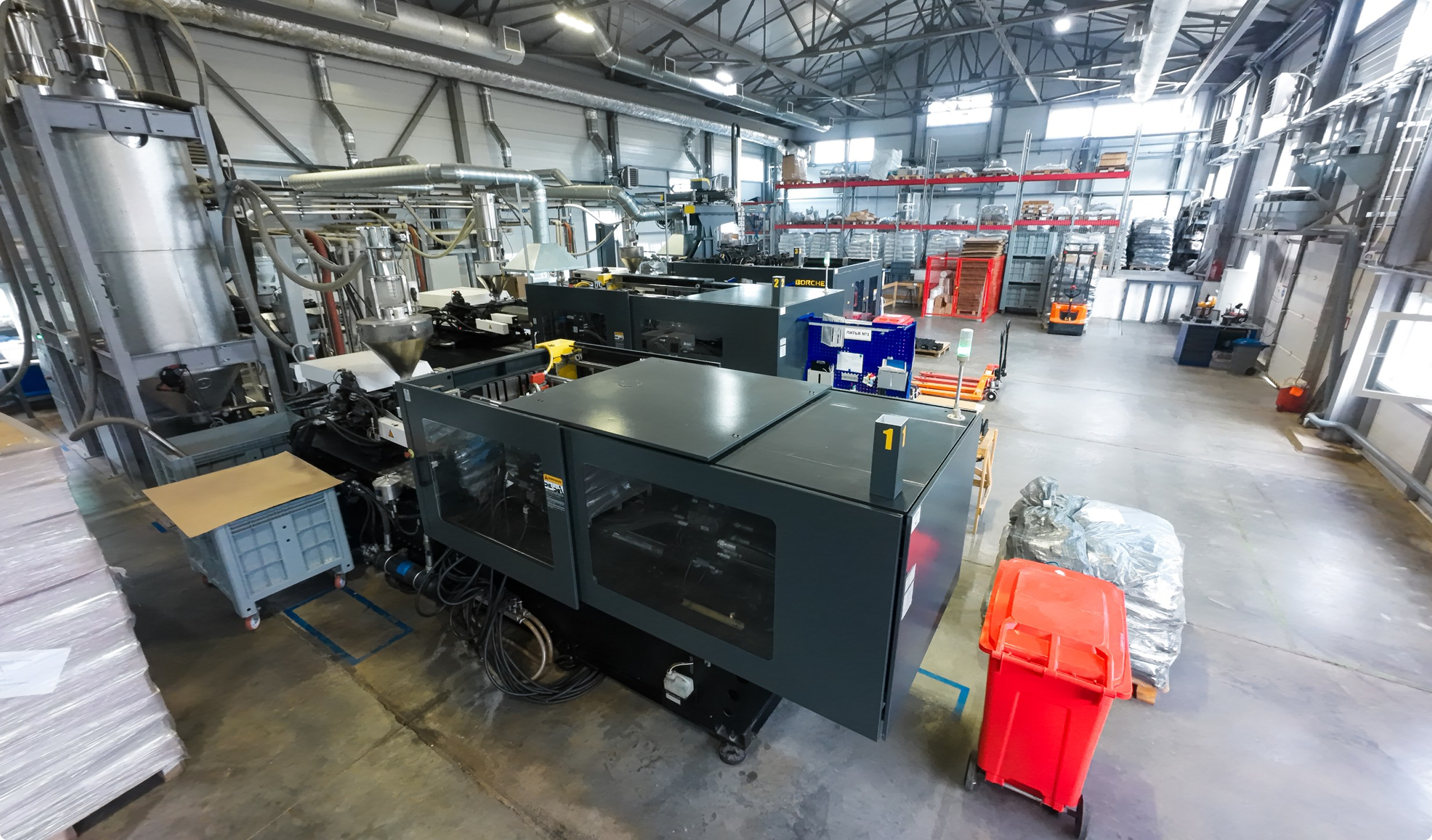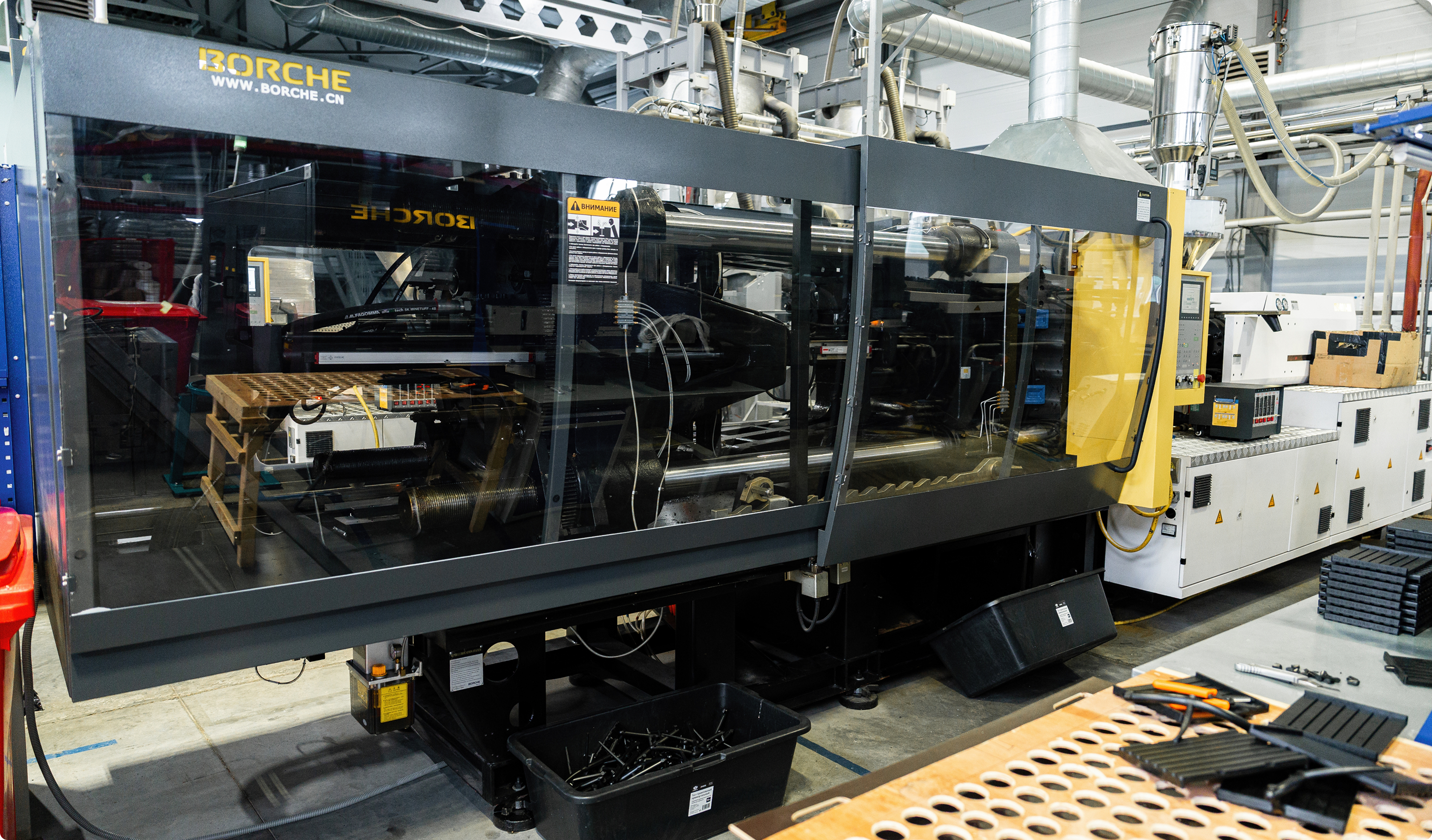 инжекционные машины, оборудование для переработки отходов, установки для испытаний.